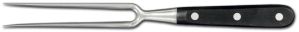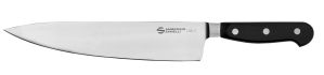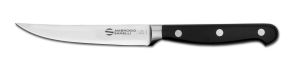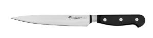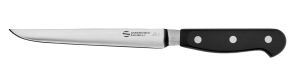 La linea Maitre combina in modo impeccabile la grande tradizione con la più avanzata tecnologia, offrendo strumenti di alta qualità che soddisfano le esigenze dei professionisti più esigenti. Ogni coltello è forgiato da un unico pezzo di acciaio, sottoposto a un rigoroso controllo di qualità e rifinito con estrema cura. La lama in acciaio inox speciale per coltelleria vanta un’elevata durezza e un’eccezionale resistenza alla corrosione, garantendo prestazioni superiori e una lunga durata nel tempo. Il perfetto bilanciamento della lama, unito a un design ergonomico, permette un utilizzo prolungato senza affaticare la mano, rendendo ogni taglio fluido e preciso. Il manico in resina acetalica (POM) è non solo resistente agli urti ma anche al lavaggio in lavastoviglie, rispettando le più recenti normative in materia di igiene alimentare. La perfetta aderenza del manico al codolo e ai rivetti in acciaio inox, senza la minima fessura, assicura un'igiene impeccabile e una presa confortevole. Inoltre, la marcatura al laser del codice prodotto e del numero di lotto garantisce un'identificazione precisa e indelebile, mentre l'affilatura finale di ogni coltello viene eseguita con un controllo laser del profilo, assicurando una lama perfettamente affilata. La scelta di un pezzo unico di acciaio per lama e manico non solo conferisce al coltello un'eccezionale resistenza strutturale, ma assicura anche un bilanciamento ottimale, essenziale per chi utilizza il coltello in modo intensivo. Ogni dettaglio, dal materiale al processo di produzione, è studiato per offrire un prodotto di qualità superiore che rappresenta la perfetta sintesi tra tradizione artigianale e innovazione tecnologica. I coltelli della linea Maitre non sono semplicemente utensili da cucina, ma veri e propri strumenti di precisione che incarnano l'arte della coltelleria italiana, portando il piacere della cucina professionale a un livello superiore.