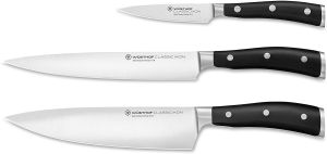 La Serie WÜSTHOF Classic Ikon è sinonimo di equilibrio, ergonomia e precisione, pensata per chi cerca il massimo delle prestazioni in cucina. La particolare forma del collarino doppio garantisce un bilanciamento perfetto, consentendo un utilizzo e un’affilatura completa della lama. Realizzati in acciaio altolegato X50 Cr MoV 15, questi coltelli sono forgiati in un unico pezzo per garantire robustezza e durata. Grazie al processo di affilatura PEtec, la lama offre un’eccezionale capacità di taglio. Inoltre, i manici ergonomici sono ribattuti e privi di giunture, assicurando igiene e manutenzione impeccabili. Una scelta perfetta per chef professionisti e appassionati di cucina.