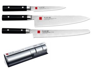 Valigetta completa di 4 coltelli damasco Kasumi con Pietre e Guide