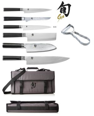 ALL KAI SHUN: Set di coltelli damascati Kai Shun Classic e pinze Global