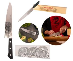 Potrete richiedere la personalizzazione con incisione laser di tutti gli strumenti in acciaio coltelli, spatole, pentole, ecc. con vostro logo o testo.