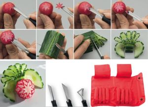 L'intaglio e la decorazione di frutta e verdura sono diventati una vera e propria forma d’arte apprezzata in tutto il mondo. In origine praticata soprattutto in Asia, questa tecnica si è evoluta fino a includere materiali come cera, sapone, grasso e cioccolato, dando vita a creazioni straordinarie. Con i nostri strumenti professionali per l’intaglio, creare decorazioni è facile, veloce e accessibile anche ai principianti. Lascia spazio alla tua creatività in cucina e trasforma ingredienti semplici in opere d’arte personalizzate.