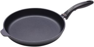 La base della padella è piatto per un uso efficace su fuoco elettrico, in ceramica e a gas.