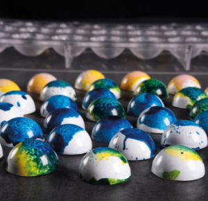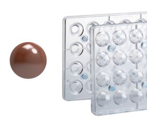 Questi stampi in policarbonato sono lo standard riconosciuto e utilizzato soprattutto dai professionisti. Sono resistenti, con una lunga aspettativa di vita e producono una finitura di alta qualità. Tutti i cioccolatieri e pasticceri li usano. Qui troverete una vasta scelta di stampi in policarbonato professionale di alta qualità e finitura per la realizzazione di tavolette di cioccolato, praline, cioccolatini, uova di Pasqua di eccellente lucentezza.